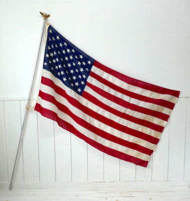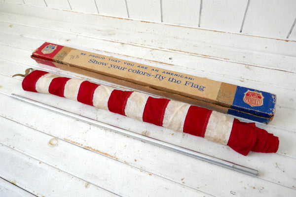 アメリカ西海岸・カリフォルニア州・サンフランシスコで見つけました・・『DETTRA FLAG PRODUCTS』の箱&ポール付き・50スター・ヴィンテージ・星条旗(アメリカンフラッグ)です。
