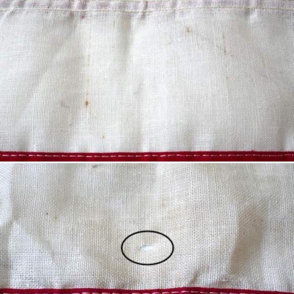 経年により数箇所にヨゴレ・端に大きな薄いシミ部分・小さな穴箇所・糸のホツレ箇所イーグルの片方羽の欠け等ございます。