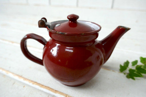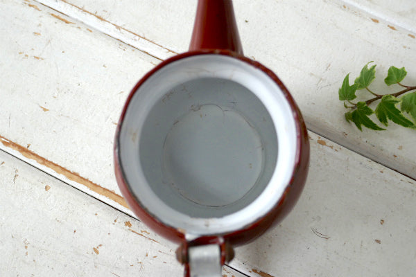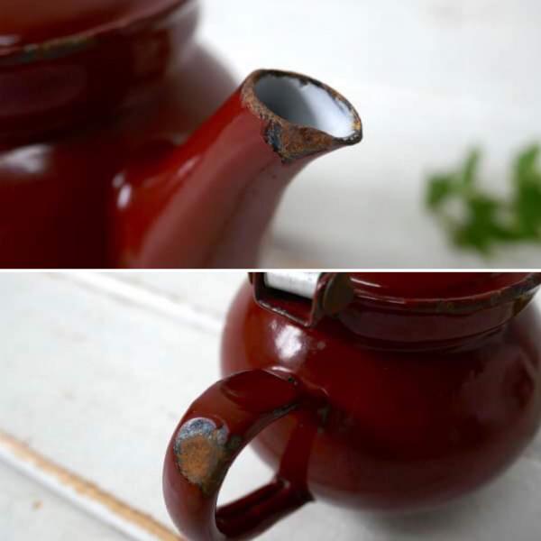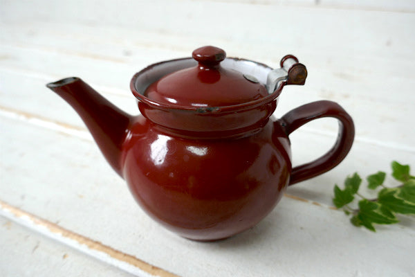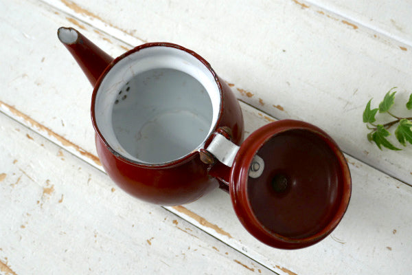 チェコスロバキア ブラウン ホーロー製 小差なアンティーク ティーポット ホーローポット レトロ