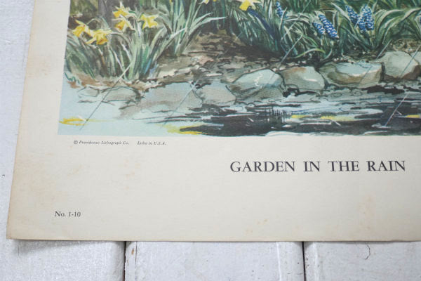 GARDEN IN THE RAIN リトグラフ 50s ヴィンテージ US アートワーク ポスター