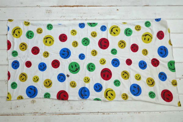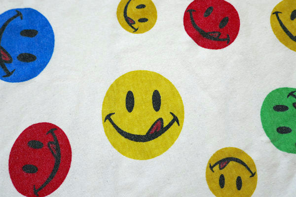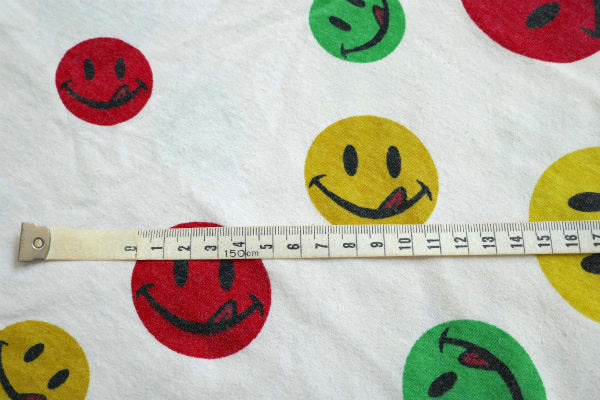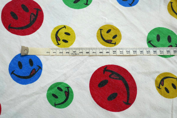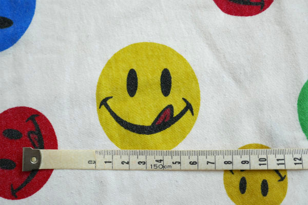 カラフルポップ スマイル スマイリーフェイス ニコちゃん ヴィンテージ ファブリック 生地 ハギレ