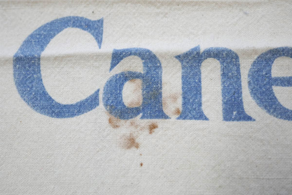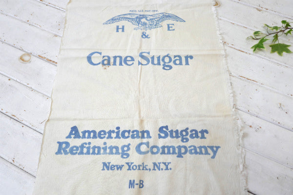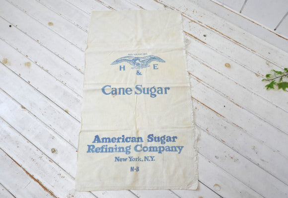 アイボリーカラーのコットン素材に、羽を広げたイーグル&【REG. U.S. PAT. OFF / H&E / Cane Sugar / American Sugar Refining Company New York, N.Y. M-B】のブルー文字がプリントされております。