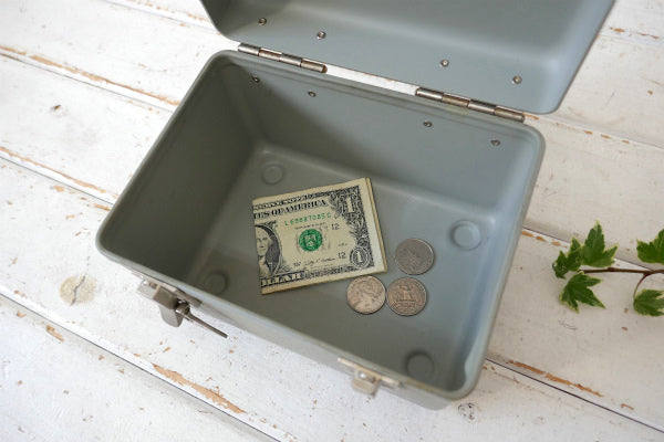 工業系 グレー ヴィンテージ メタルケース ツールケース キャッシュボックス 金庫 ガレージ USA