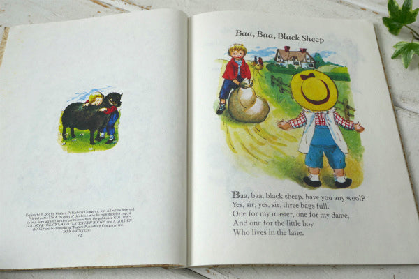 アメリカ西海岸・サンフランシスコで見つけました・・1942年に創刊された一連の児童書 “little golden book”より、イギリスの古い童謡『マザーグース(Mother Goose)』の1961年・ヴィンテージ・絵本・洋書です。 マザーグース童謡22曲の可愛い絵柄と歌詞が描かれています。 ・Baa,Baa, Black Sheep ・Old King Cole ・Little Jack Horner ・Little Miss Muffet ・Sing a Song of Sixpence ・Little Girls ・Little Boys ・Pease Porridge ・The Old Woman ・Little Polly Flinders ・A Dollar, A Dollar ・Ride an Cockhorse ・Tom, Tom, the Piper's Son ・Jack and Jill ・Georgia Porgie ・Pussycat, Pussycat ・Peter, Peter, Pumpkin Eater ・Old Mother Hubbard ・Little Boy Blue ・Little Bo-Peep ・Pat-a-Cake, Pat-a-Cake ・Mary Had a Little Lamb お子様の学習絵本・・そのまま飾って楽しんだり・・コレクションなどに♪ 経年による表紙ヨゴレ・薄いシミ箇所・見開きにペン跡・角折れ等ございますが、内側の状態は良い方です。 画像(写真)でのご判断を宜しくお願い致します。 ■アメリカ製・英語 ■ハードカバー ■24pages ■A GOLDEN BOOK・NEW YORK ■Eloise Wilkin's ■W16.8cm×H20.0cm ■コンディション:★★★★☆ ■レターパックプラス¥370対応可(追跡サービスあり・補償なし) ※ご注文の際、お手数ですがメッセージ欄に『レターパックライト希望』とご記入下さい。新たにお見積もりをメールにてお知らせさせていただきます。