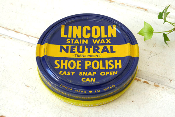 アメリカ中西部・シカゴで見つけました・・LINCOLN STAIN WAX SHOE POLISH/NEUTRAL TRANSPARENT リンカーン シューポリッシュ・ナチュラル カラー・ヴィンテージ・ティン缶・靴磨き(60 GRAMS)です。