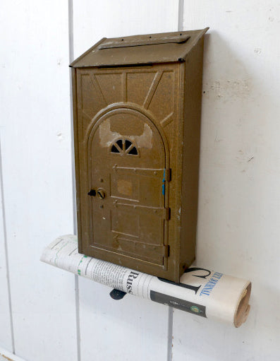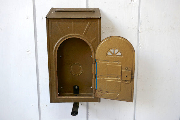 FULTON ドア型 ゴールド 新聞受付き ティン製 アンティーク メールボックス 郵便受け ポスト
