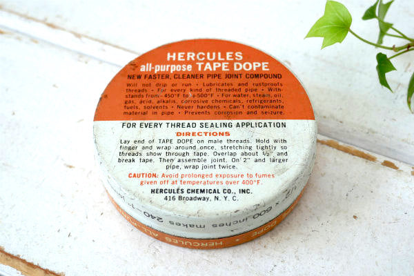 HERCULES TAPE DOPE シールテープ入り ヴィンテージ テープ缶 ティン缶 USA