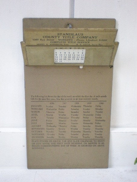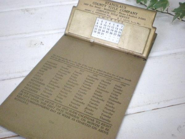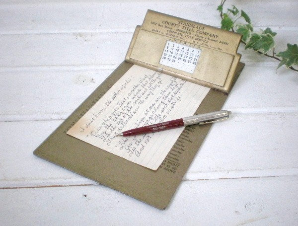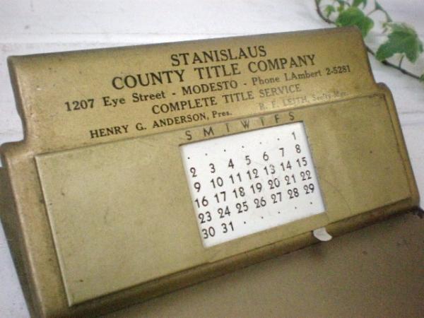 カリフォルニアでみつけました・・『Remembrance B.&B. ST.PAUL.MINN, U.S.A.』のスチール製・カレンダー付き50’sアンティーク・クリップボード(バインダー)です。