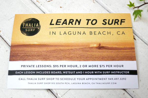 カリフォルニア ラグナビーチ“THALIA SURF SHOP・LEARN TO SURF サーフショップ タリアサーフ” オリジナル フライヤー(印刷物)です。