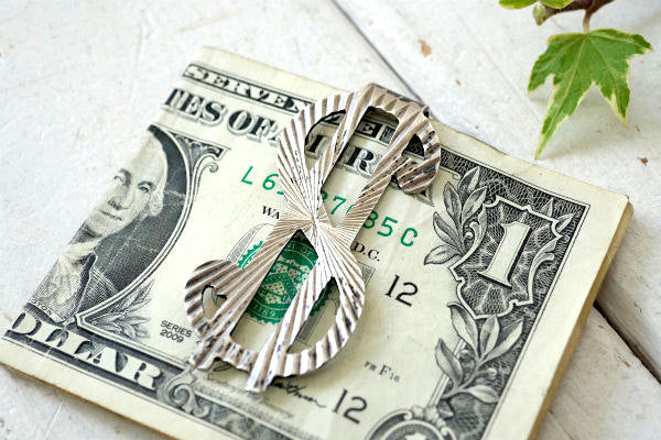 ドル・$・モチーフ 手彫り シルバー 925 メキシコ ヴィンテージ・マネークリップ 刻印
