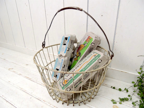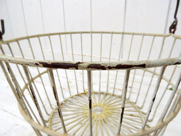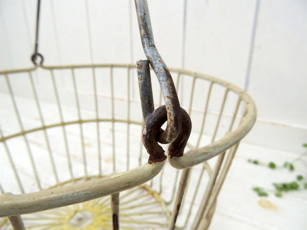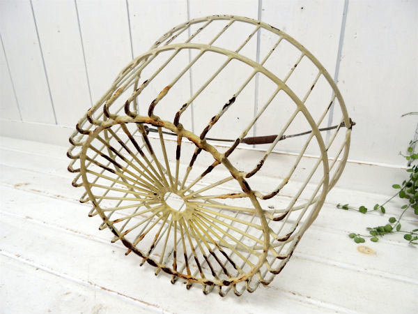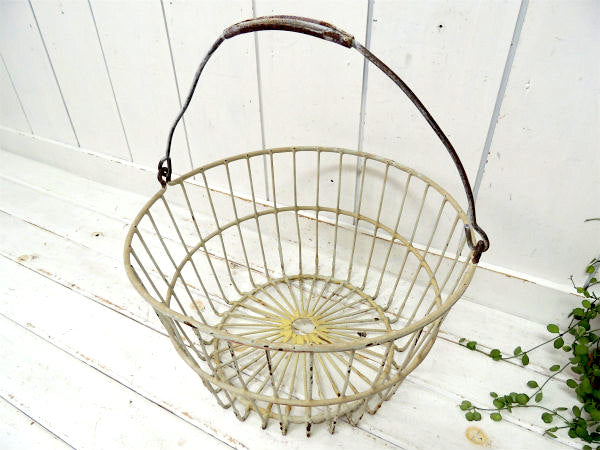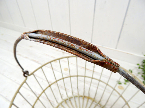 アメリカ西海岸・サンフランシスコで見つけました・・クリーム色のアイアン製・アンティーク・ワイヤーバスケット(カゴ)です。