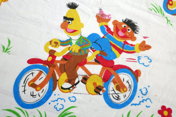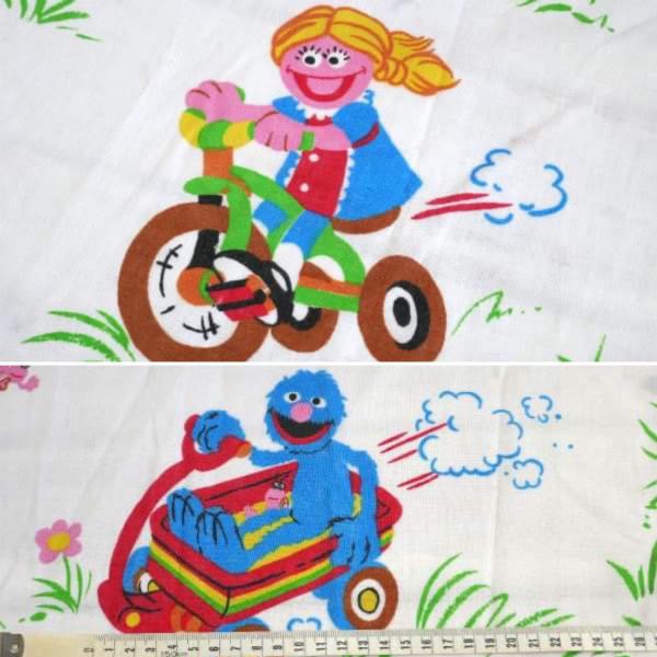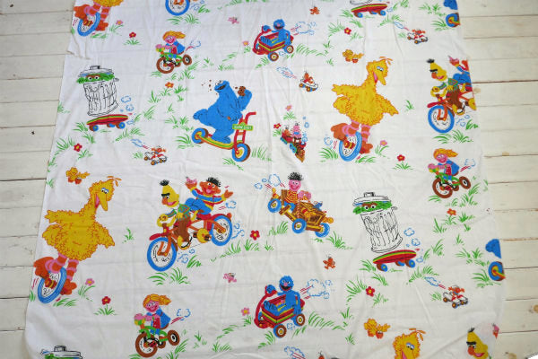 セサミストリートの仲間たち 自転車 スケボー 乗り物 ヴィンテージ ユーズドシーツ(ボックスタイプ)