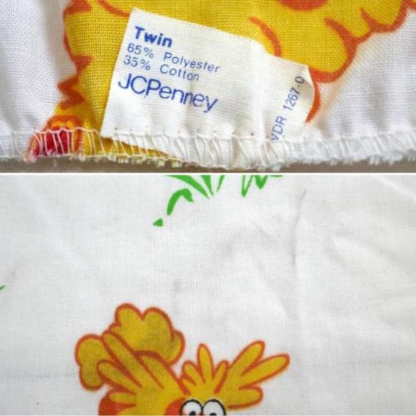 アメリカ西海岸・カリフォルニア州で見つけました・・アメリカの老舗・大型デパート『JC.Penny(ジェーシーペニー)』で販売されていた『セサミストリート』乗り物柄・ヴィンテージ・USEDフィットシーツです(ツインサイズ)。