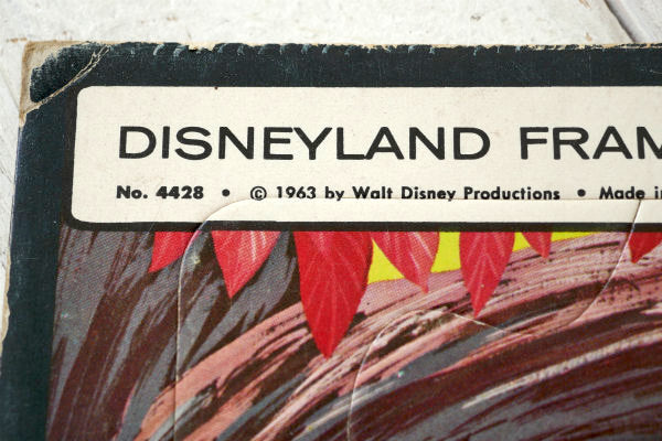 上部に【DISNEYLAND FRAME TRAY PUZZLE No.4428・ ©1963 by Walt Disney Productions・ Made in U.S.A. by western Printing and Lithographing Co.・ WHITMAN PUBLISHING CO., Racine, Wis. / DEVELOPS COORDINATION AND MOTOR CONTROL】とございます。