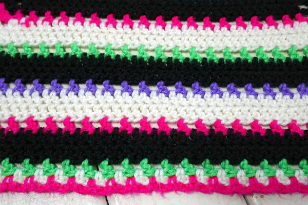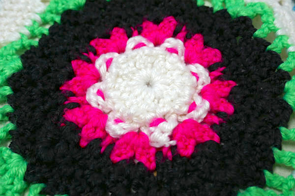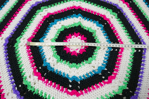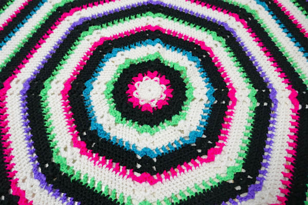 カラフルな6色のコットン糸をかぎ針で8角形に丁寧に編まれたお品です。