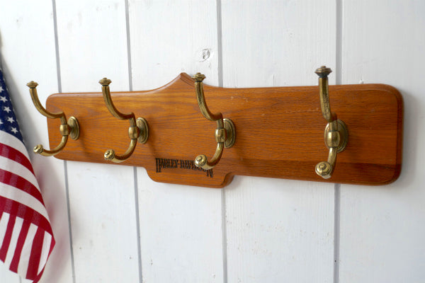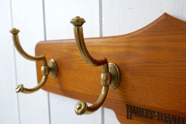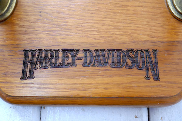 しっかりとした木製プレートに、真鍮製のフックが4個付いており、【HARLEY-DAVIDSON】のロゴが刻まれています。