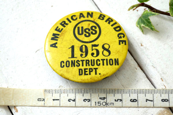 USS 1958 AMERICAN BRIDGE アメリカンブリッジ イエロー ヴィンテージ 缶バッジ 社員証 ID