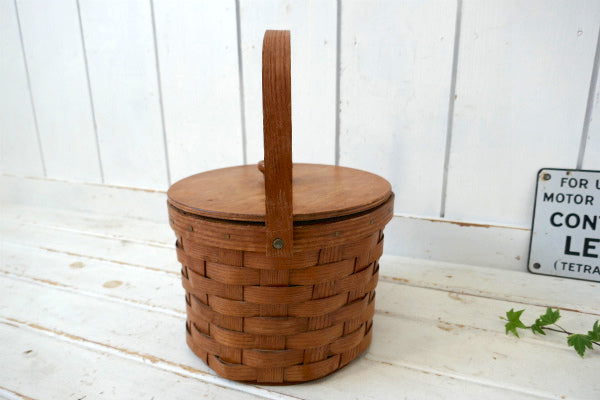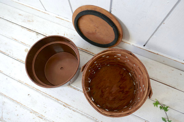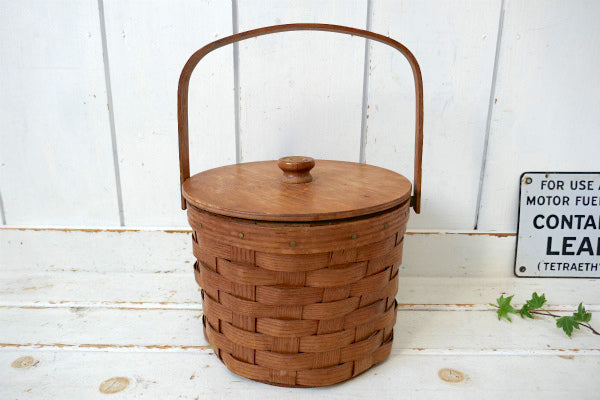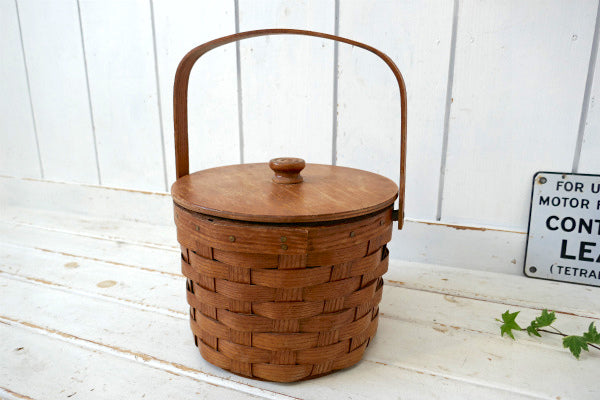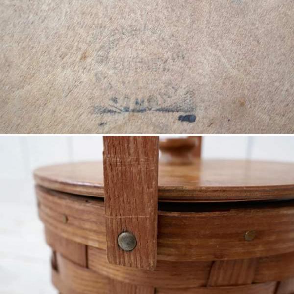 BASKETVILLE 木製 ピクニック ヴィンテージ バスケット カゴ ラウンドバスケット USA