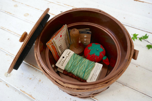 パンやチーズ・フルーツを詰め込んでピクニックに出掛けたくなりそうな、サイズ感の良いキュートなバスケット&裁縫箱にもOKです。
