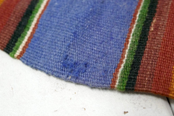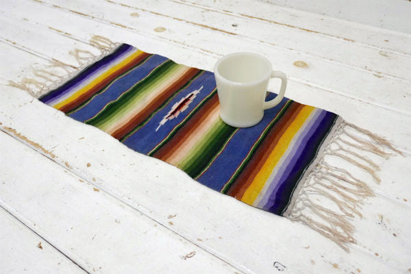 アメリカ西海岸・カリフォルニア州・サンフランシスコで見つけました・・卓上サイズのフリンジ付き・ヴィンテージ・サラペ(メキシカンラグ)です。