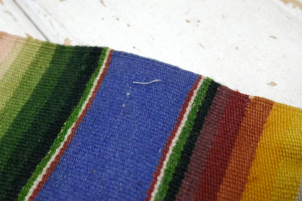 カラフルな配色で細かく編まれたメキシコの古い織物(サラペ)です。 両サイドにフリンジが付いています。