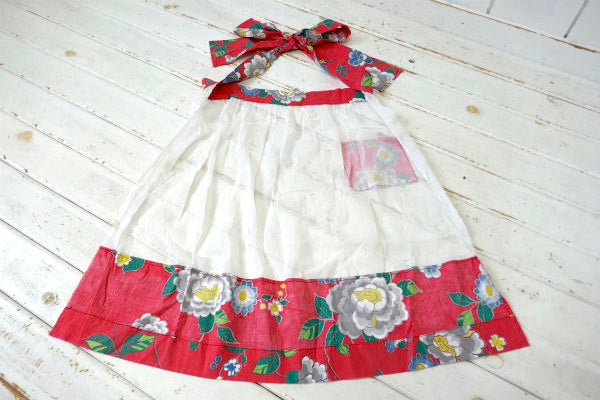 フラワー シースルー レトロ ビンテージ エプロン 古着 ポケット付き 花柄 USA