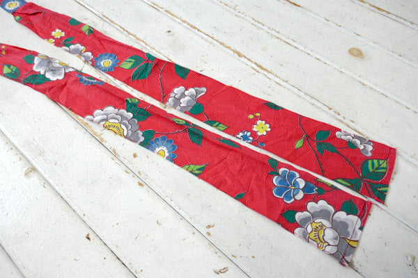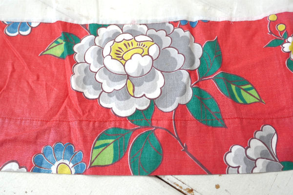 ピンクレッド色ベースのコットン素材に、オリエンタルな雰囲気のフラワープリントです。 白い部分はシールスー素材です。