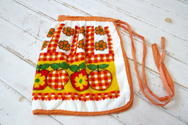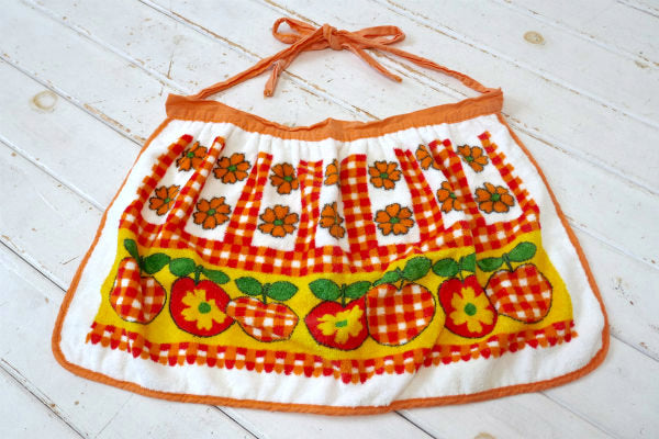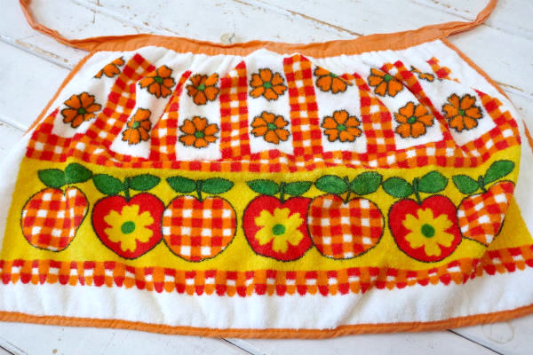 レトロポップ リンゴ 花柄 フラワー チェック パイル地 70s ビンテージ エプロン 古着 USA