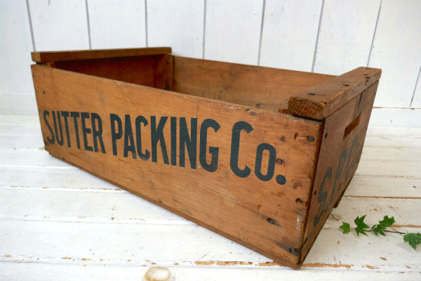 アメリカ西海岸・カリフォルニア州・サンフランシスコで見つけました・・『SUTTER PACKING CO』のアドバタイジング・アンティーク・ウッドボックス(クレートボックス)です。