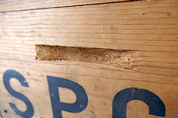 野菜の缶詰を運んでいた、大きめサイズの古い木箱です。