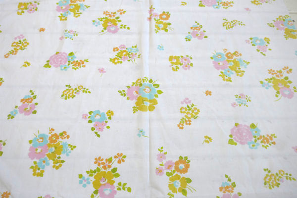 アメリカ西海岸・カリフォルニア州で見つけました・・花柄のヴィンテージ・USEDフラットシーツ(ハーフサイズ)です。