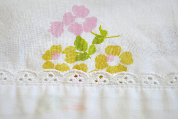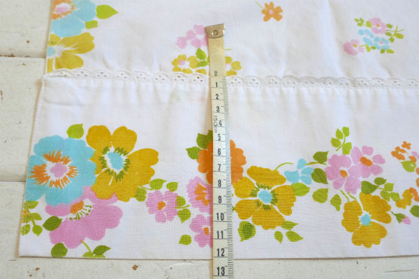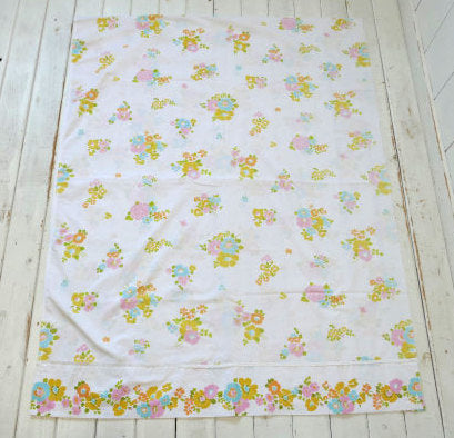 パステルカラー 花柄 レース付き ヴィンテージ ユーズドシーツ ハーフサイズ ハンドメイド USA