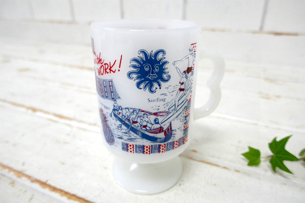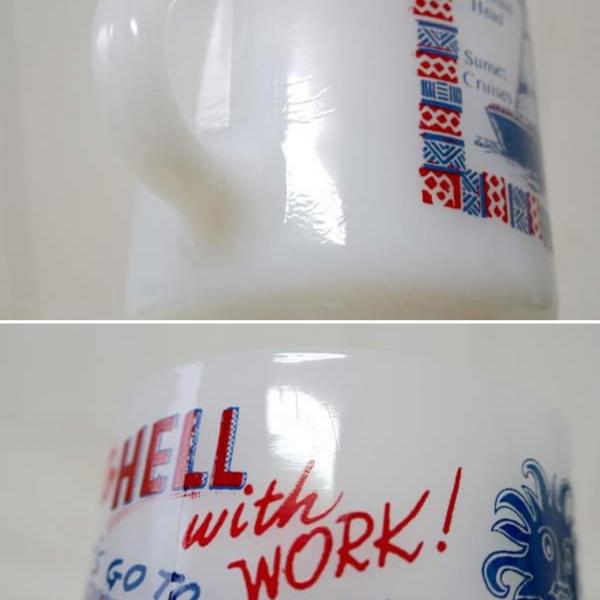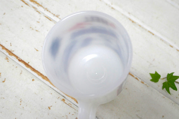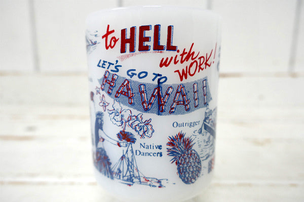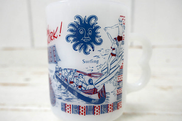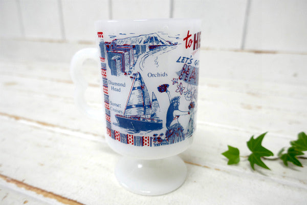 アメリカ西海岸・カリフォルニア州・サンフランシスコで見つけました・・『FEDERAL GLASS COMPANY(フェデラルグラス)社』のミルクガラス製 “HAWAII” サーフィン スーベニア・フッテッド・マグカップです。