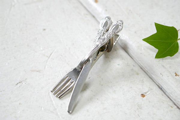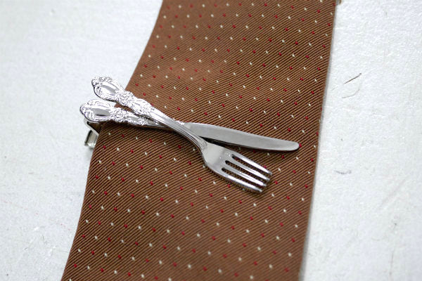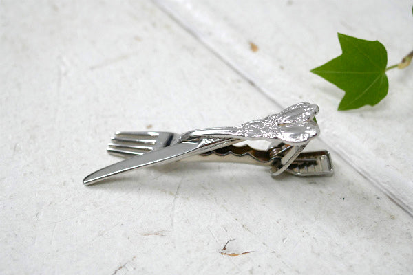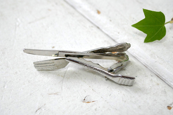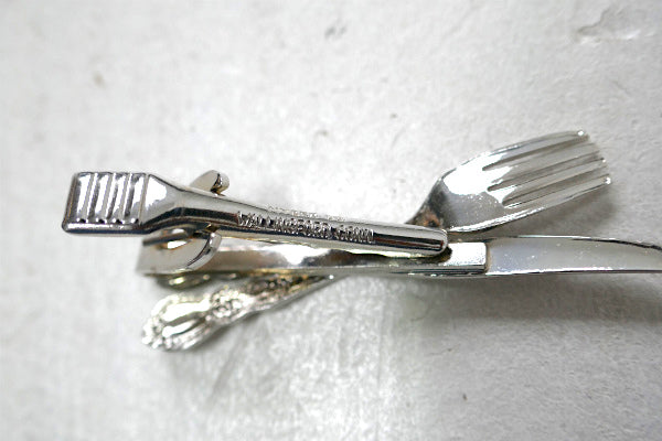 Myers Co フォーク&ナイフ シルバートーン ヴィンテージ タイピン タイクリップ 紳士 US