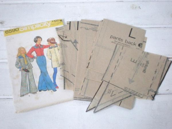 カリフォルニアでみつけました・・・1974年・アメリカ『Simplicity Pattern Co.』のガールズ・ワンピース&シャツ&ワイドパンツ3種のヴィンテージ型紙です。