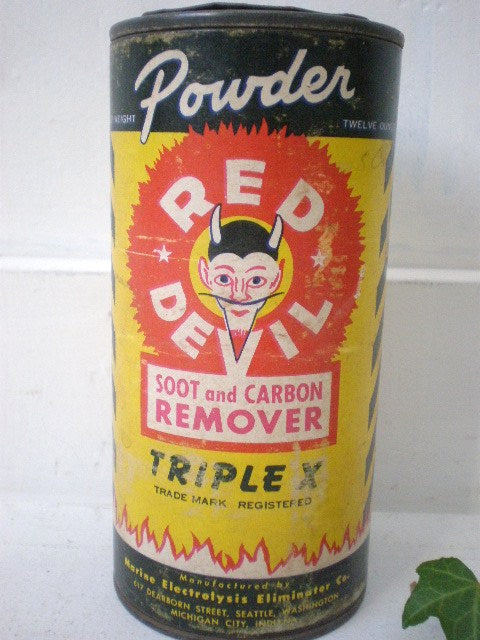 カリフォルニアでみつけました・・『RED DEVIL SOOT and CARBON REMOVER』のビンテージ・ブリキ缶です。