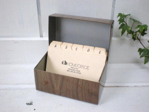 ウッド柄・ティン製・デッドストック・ヴィンテージ・アドレスケース/ファイルボックス USA
