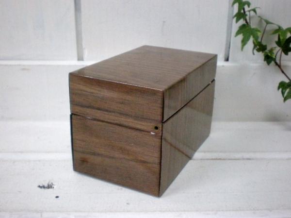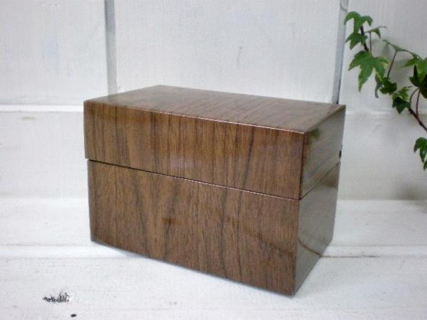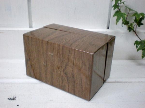 アメリカで見つけました・・ウッド柄のティン製・デッドストック・ヴィンテージ・カードボックスです。