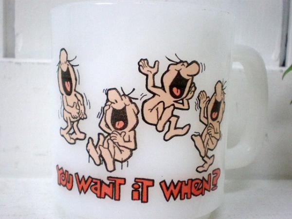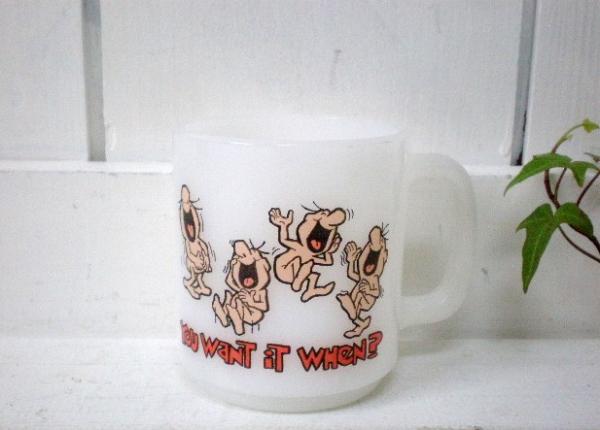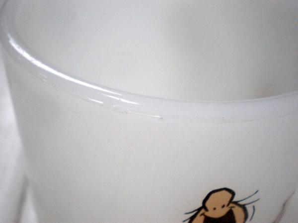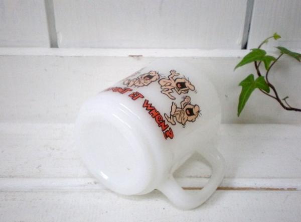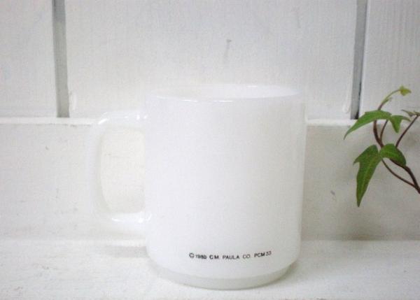 【グラスベイク・Glasbake・1980's】アドバタイジング・マグカップ・ミルクガラス