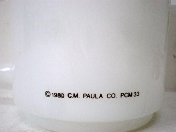 アメリカ西海岸・カリフォルニアでみつけました・・マッキー社『グラスベイク(Glasbake)』の【C.M. PAULA CO.】のアドバタイジング・80’sヴィンテージ・マグカップです。