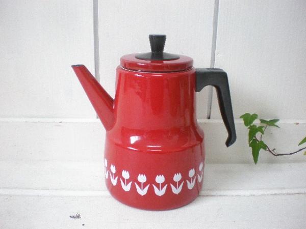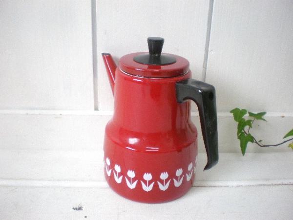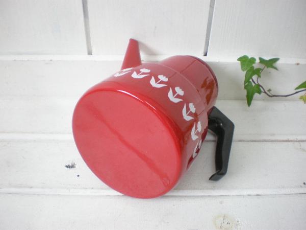 チューリップ柄 アンティーク・ホーローポット/ケトル