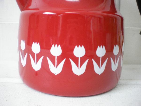 フランスの蚤の市でみつけました・・北欧デザインのチューリップ柄・アンティーク・ホーロー製ポット(ケトル)です。