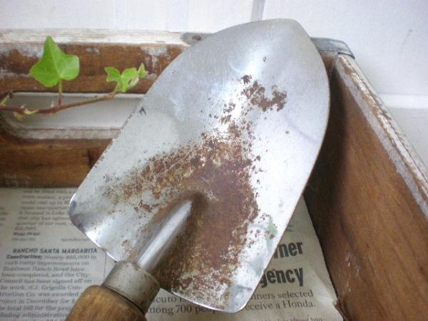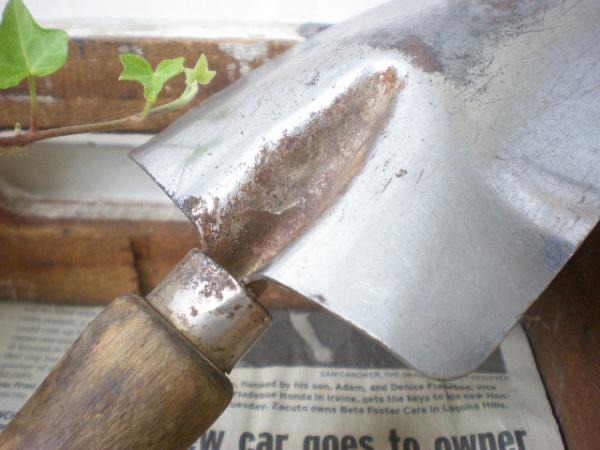 カリフォルニアでみつけました・・木製ハンドルのアンティーク・スコップ(スクープ)です。