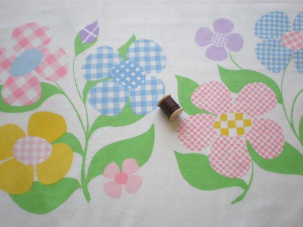 USA キュートな花柄・ヴィンテージ・ユーズドシーツ(フラット)