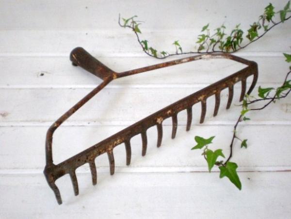 シャビーなアイアン製・アンティーク・熊手/農具/ガーデンフォーク USA