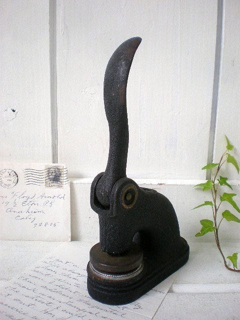 カリフォルニアでみつけました・・アイアン製のアンティーク・エンボススタンプ(カンパニーシール)です。