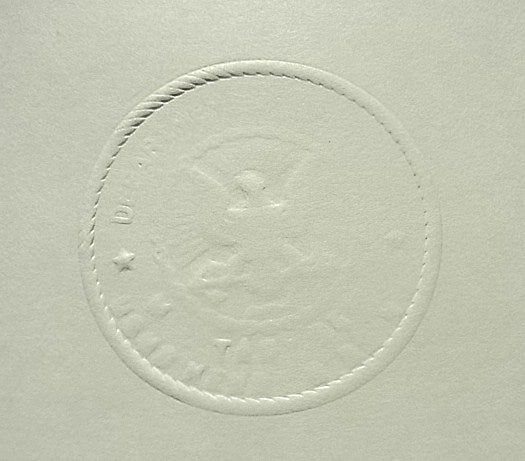 デスクトップ・タイプですので通常ですとハンドルを下げると直径約4cmのエンボスマークがプレスされますが、こちらのお品はエンボスがぼんやりと出る程度です。