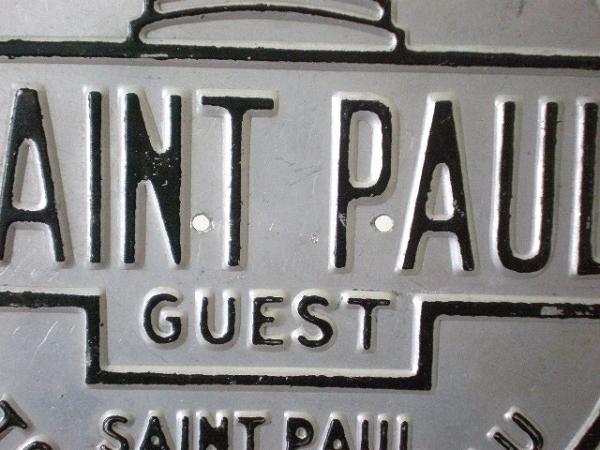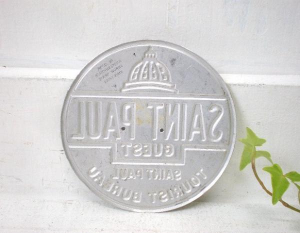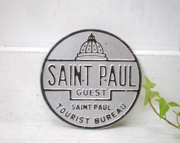 アルミ製の小さな丸いサインに、【SAINT PAUL GUEST SAINT PAUL TOURIST BUREAU】と文字が入っております。