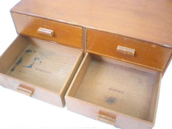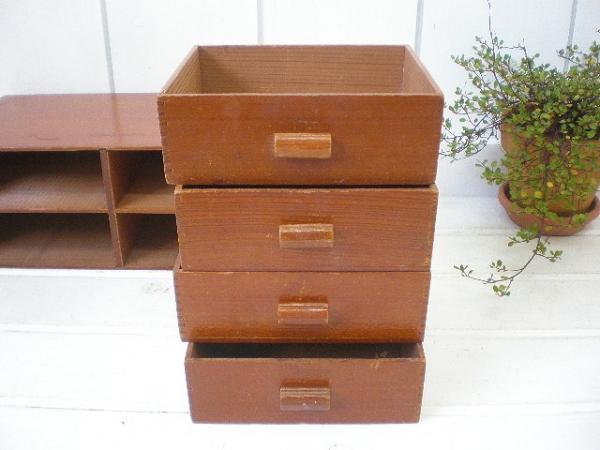 4つの引き出しはそれぞれ大きさが異なり、内側には英文字が入っております。