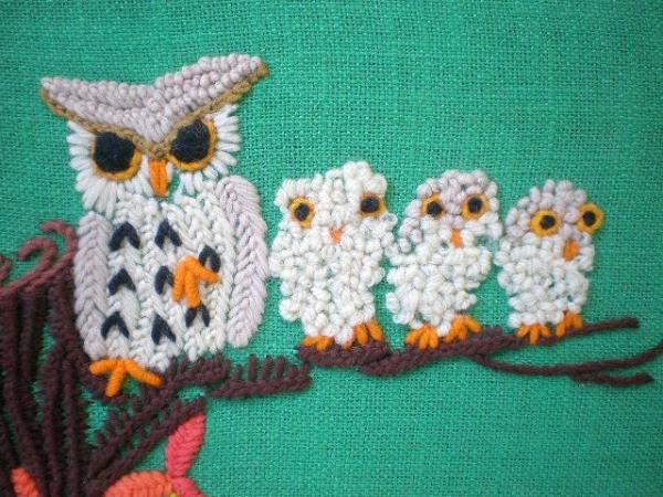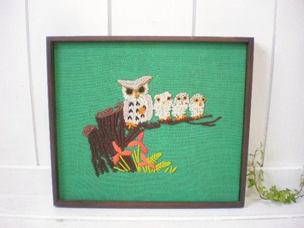 ふくろう ヴィンテージ刺繍フレーム/壁掛け USA